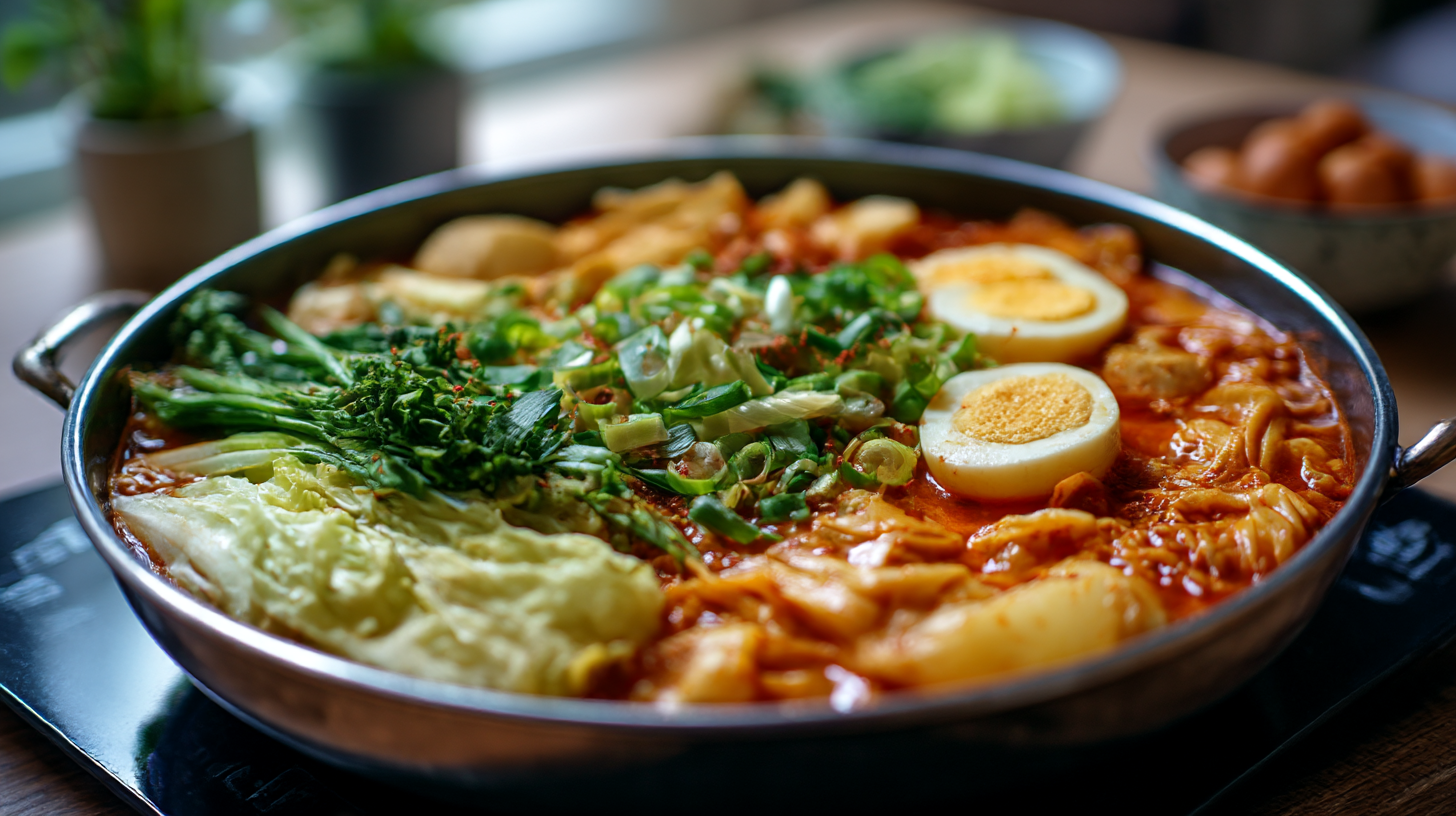 4️⃣ 두부 & 채소 넣기! - 두부, 양파, 대파, 청양고추를 넣고 5분간 더 끓여줍니다. - 라면 사리나 떡을 넣어도 맛있어요! 🍜🥢