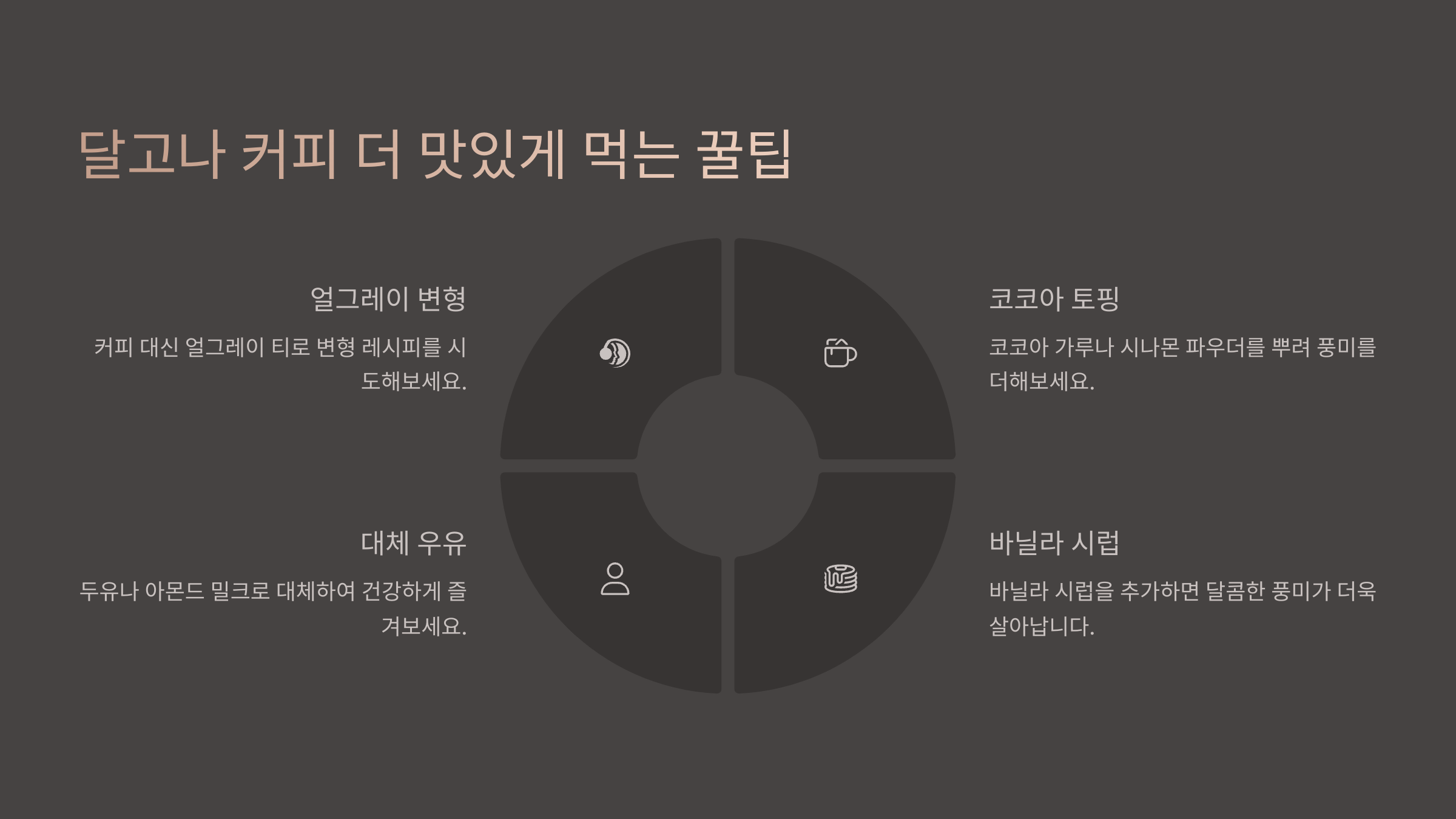 달고나 커피는 기본 레시피도 맛있지만, 조금만 응용하면 더 다양한 풍미로 즐길 수 있어요! 여기 맛을 업그레이드하는 꿀팁을 소개할게요! 🎉