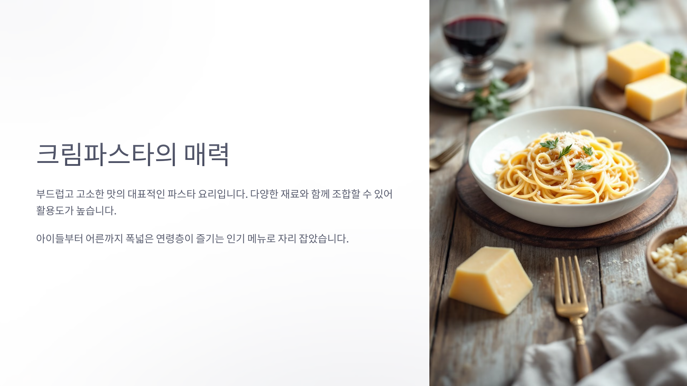 크림소스를 직접 만들면 더욱 깊은 풍미를 즐길 수 있어요. 사실 크림파스타는 어렵게 생각할 필요 없어요! 기본 재료만 있으면 10분 만에 근사한 레스토랑 스타일의 요리를 완성할 수 있답니다. 😋