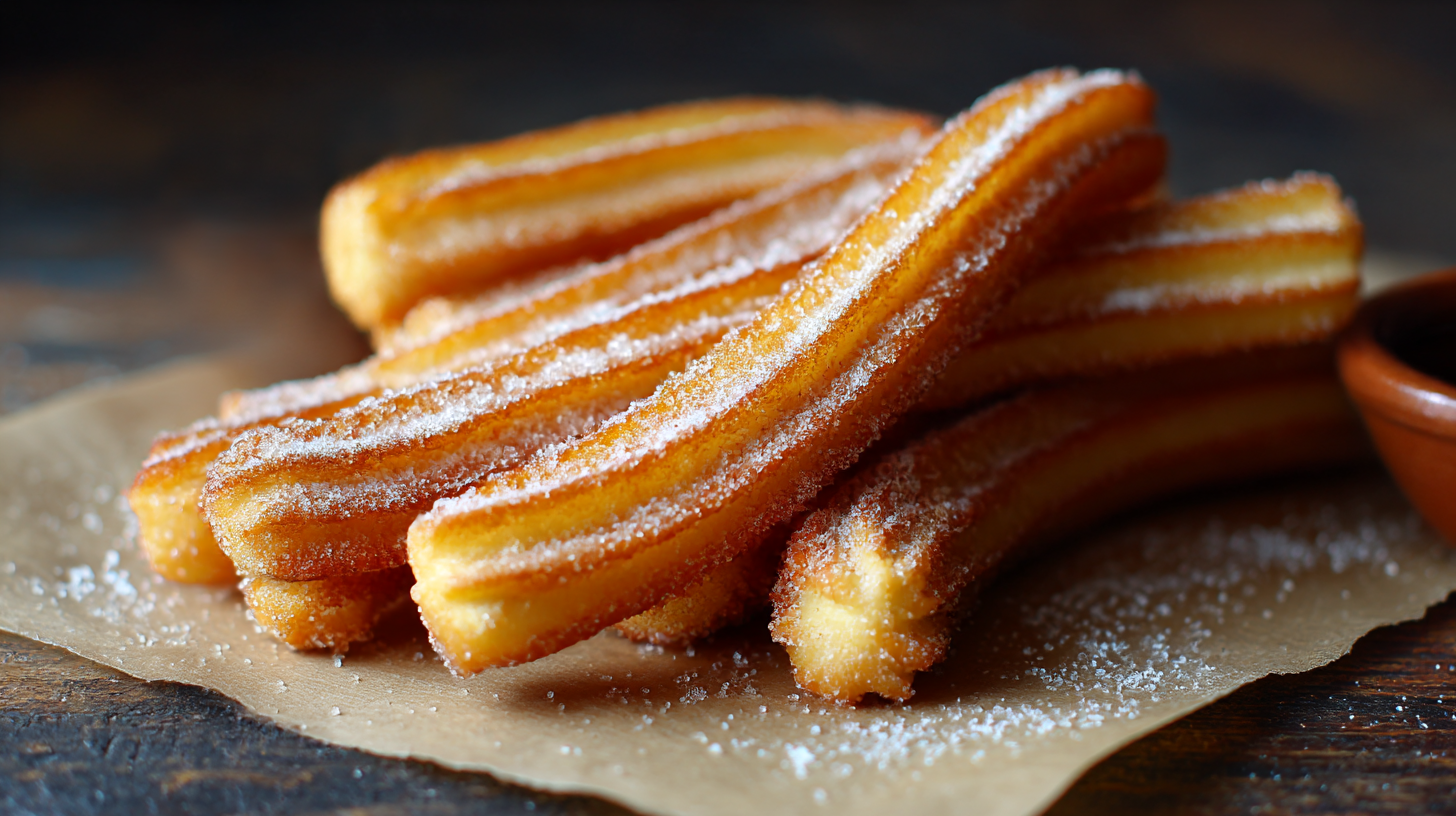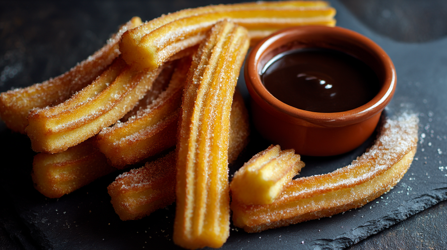 추로스(Churros)는 스페인과 포르투갈에서 시작된 전통 디저트예요. 반죽을 짜서 튀긴 후, 설탕과 시나몬을 묻혀 먹는 것이 특징이에요. 멕시코에서는 초콜릿 소스와 함께 곁들여 먹는 경우가 많아요. 🍫