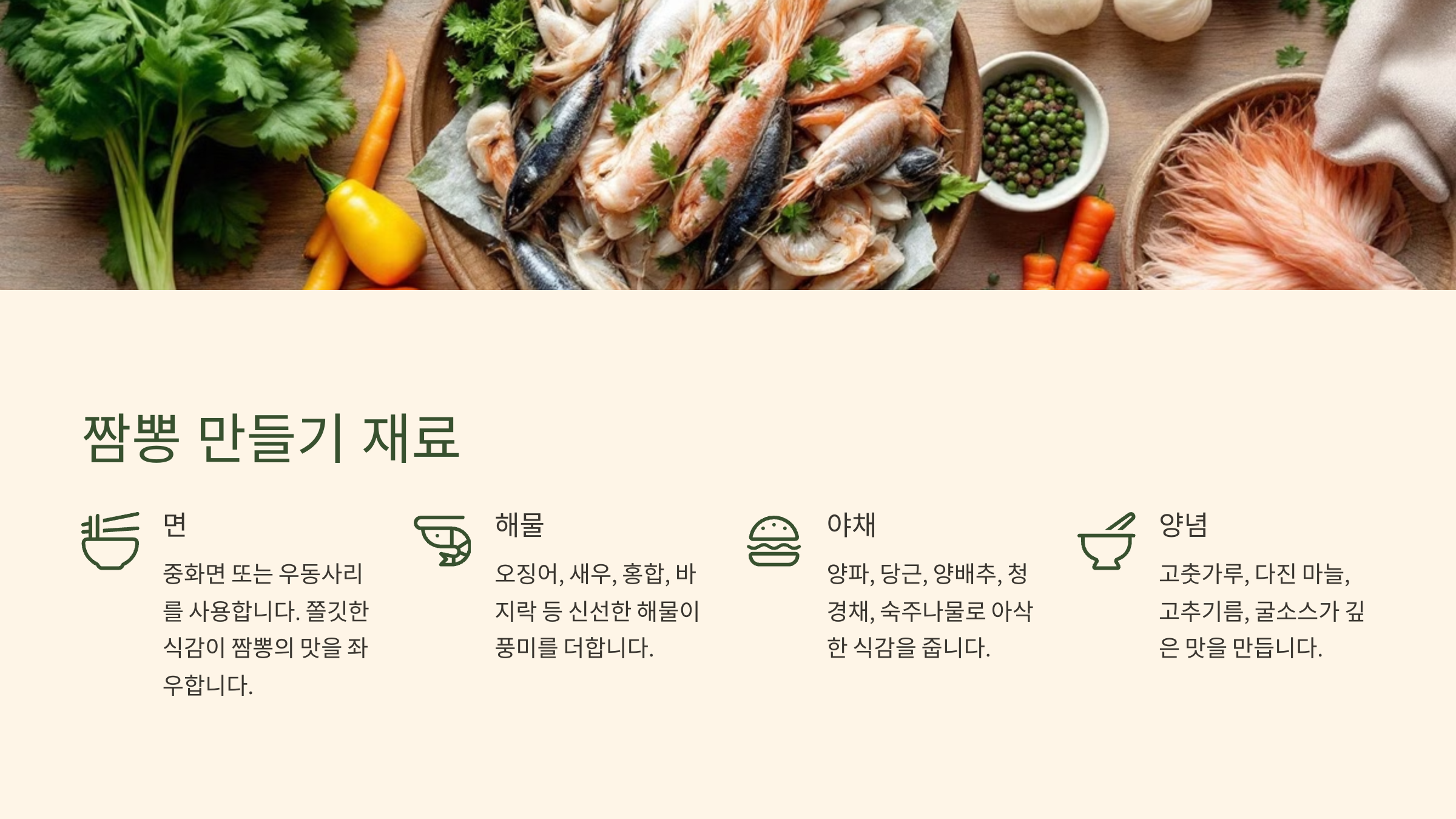 이제 짬뽕이 어떤 요리인지 알았으니, 맛있는 짬뽕을 만들기 위한 재료를 알아볼까요? 🍜🔥