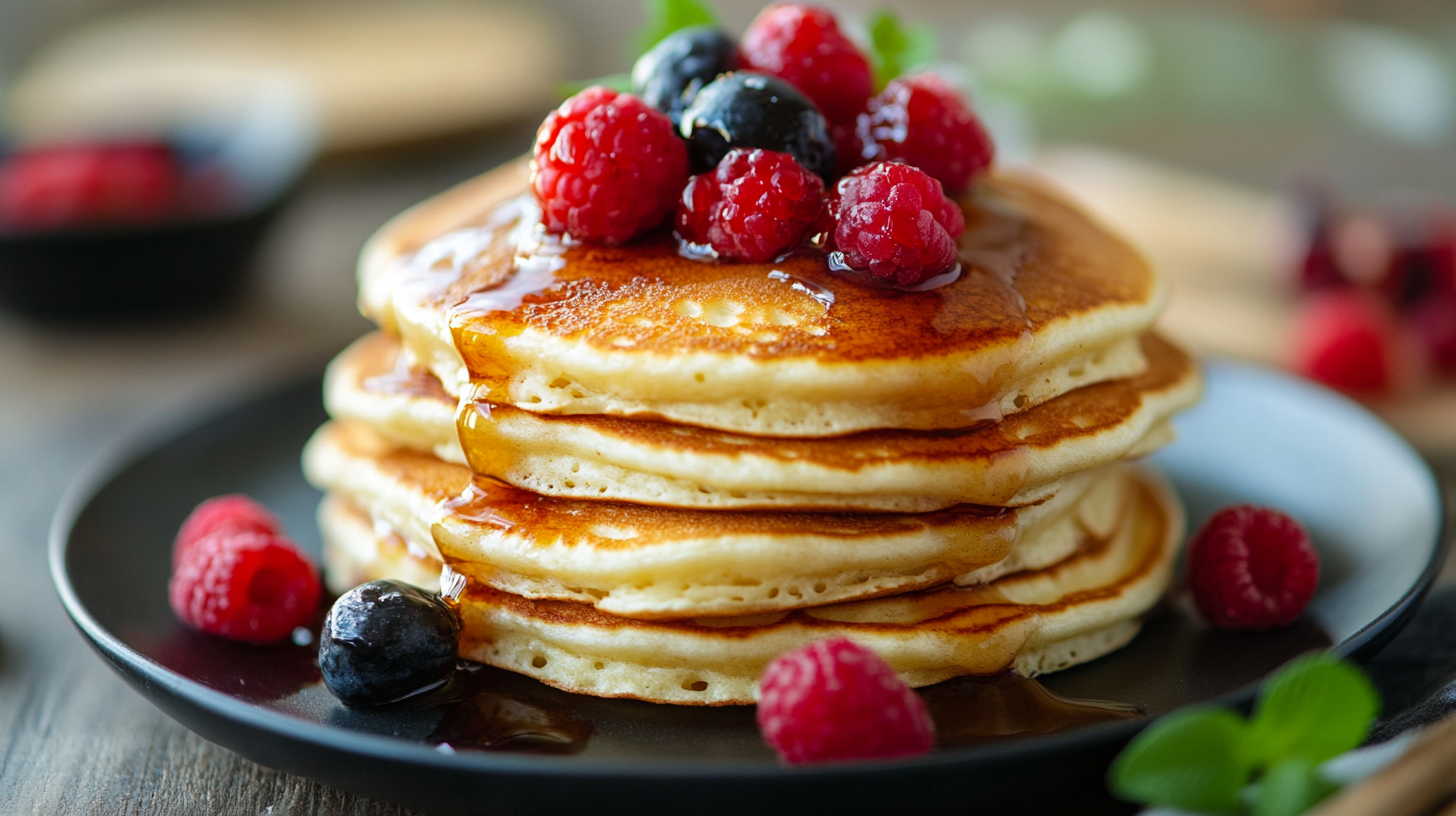 추가 재료 효과 꿀 또는 메이플 시럽 🍯 팬케이크 위에 뿌리면 달콤함 업! 버터 🧈 팬케이크 위에 녹이면 풍미 최고! 과일 🍓🍌 딸기, 바나나, 블루베리와 함께 먹으면 더욱 맛있어요! 이제 완벽한 반죽을 만들기 위한 과정을 알아볼까요? 🥣✨