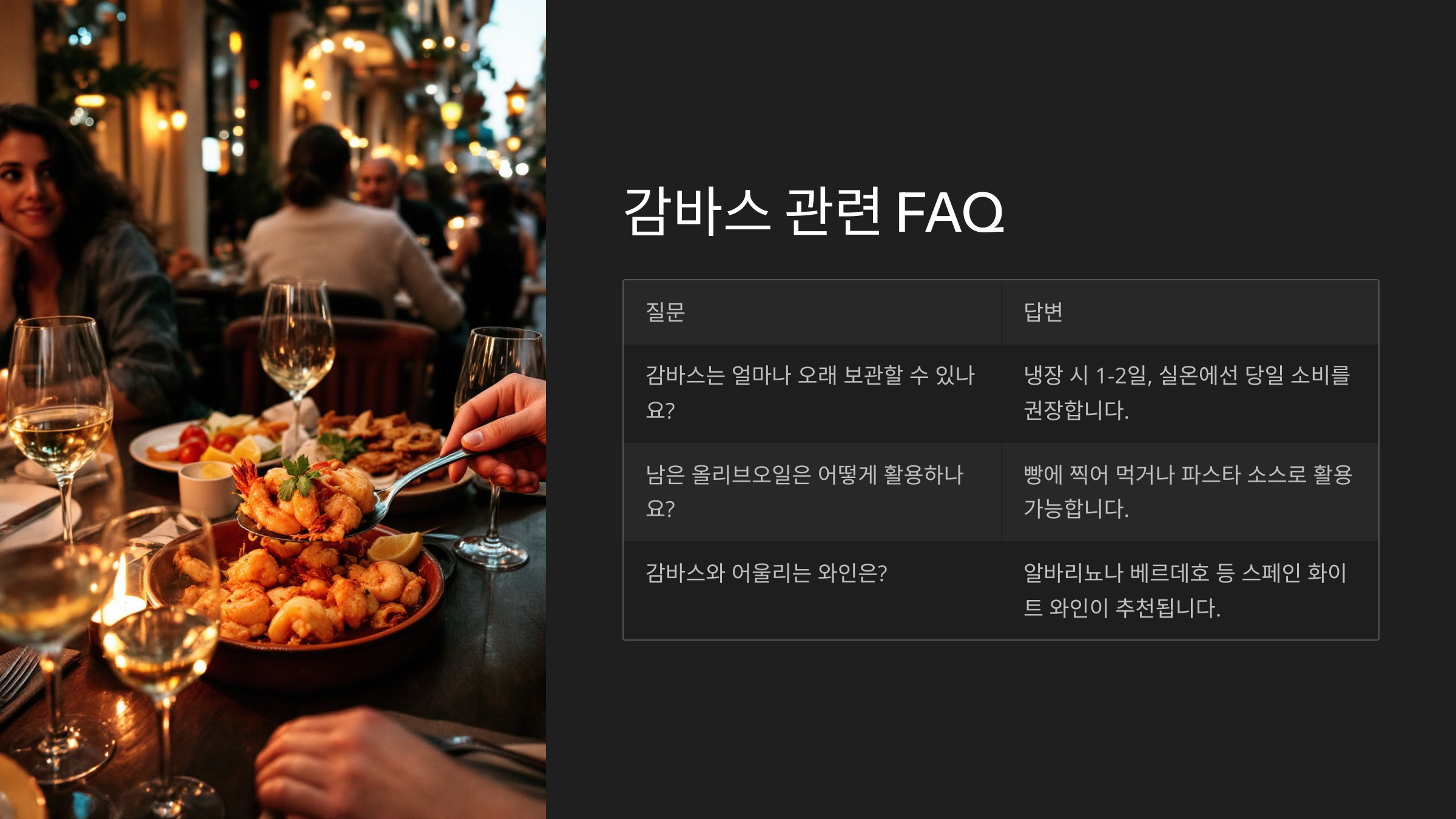 감바스를 만들 때 자주 궁금해하는 질문들을 정리해봤어요! 😊