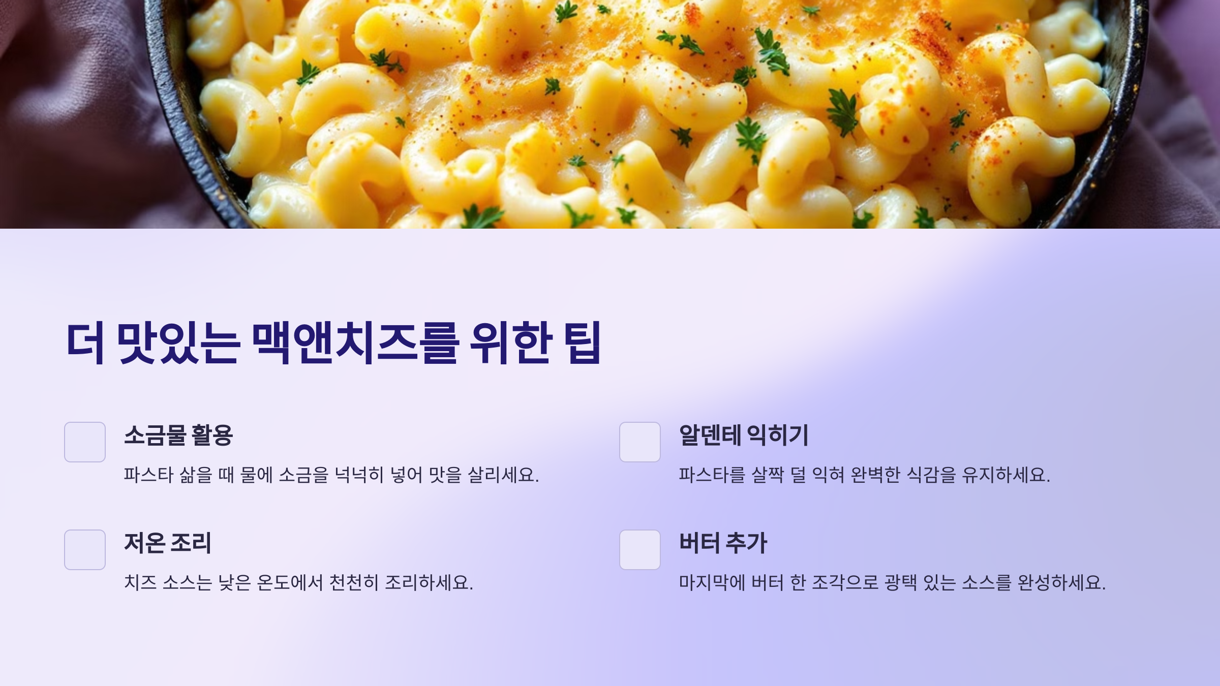 ✨ 더 맛있는 맥앤치즈를 위한 팁