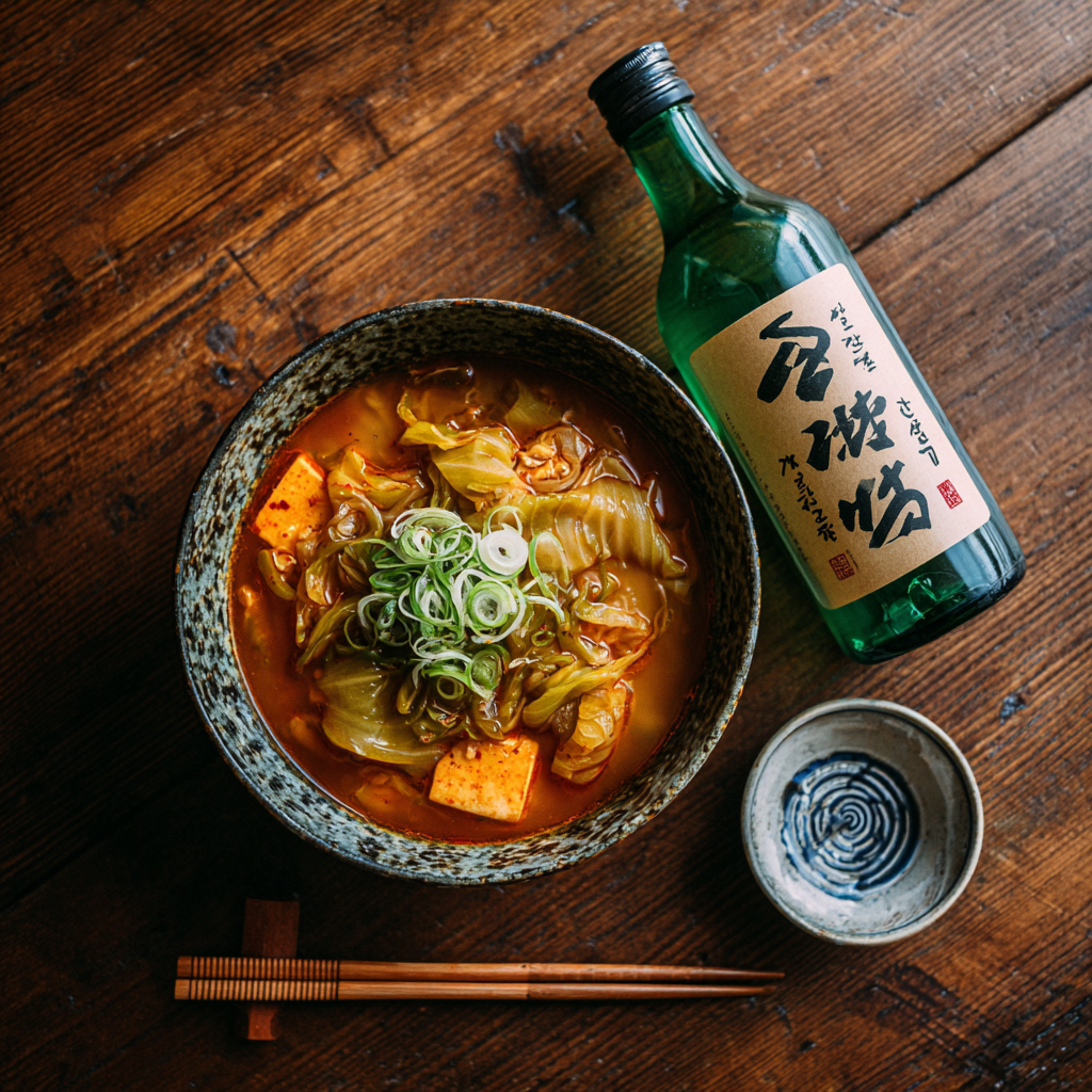 소주 외에도 맥주, 막걸리 등과도 잘 어울리지만, 김치 수제비는 소주의 매운맛과 깊은 풍미를 가장 잘 살려주는 최고의 궁합으로 사랑받고 있어요.