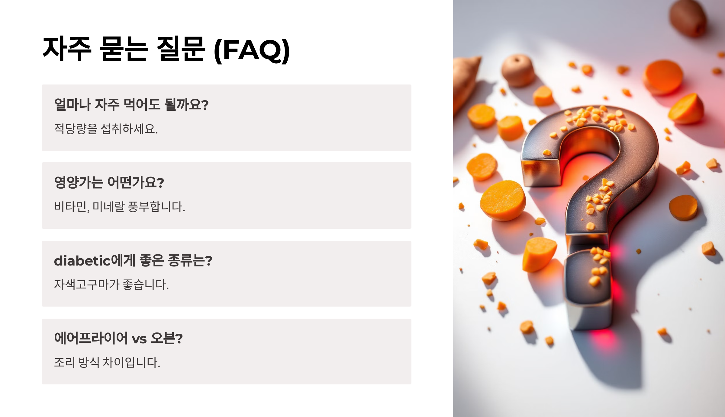 마지막으로, 사람들이 자주 궁금해하는 고구마 관련 질문들을 모아봤어요! 📢