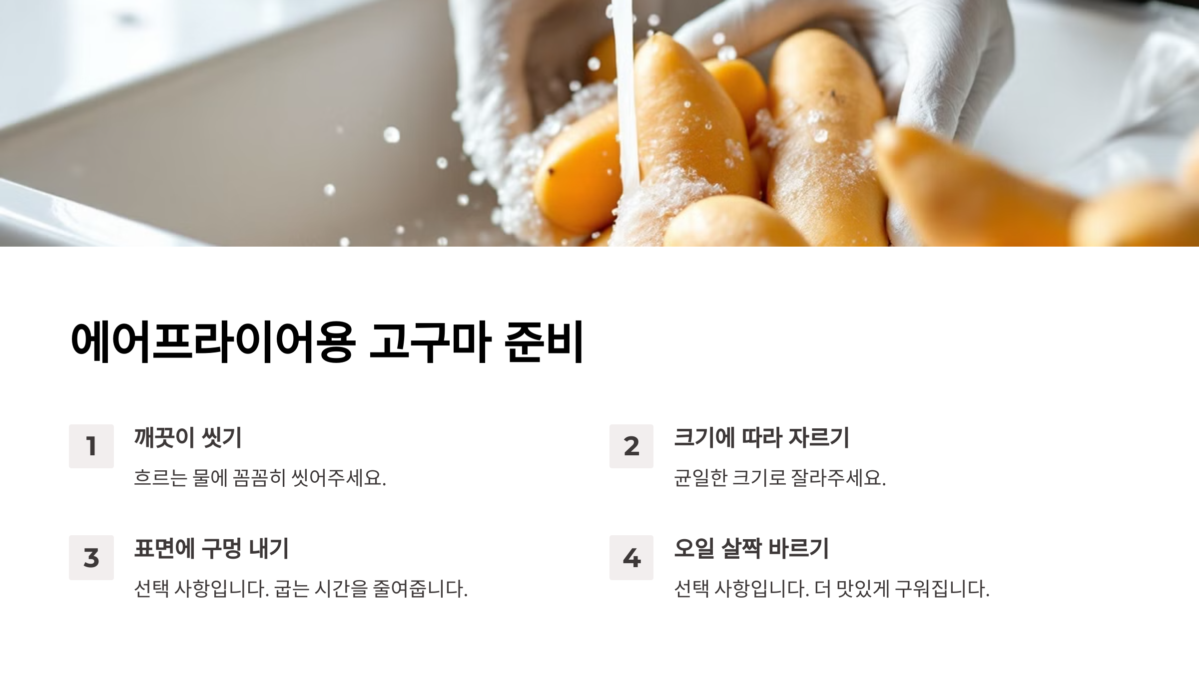 - 📌 고구마 크기 선택: 중간 크기의 고구마가 가장 균일하게 익어요.