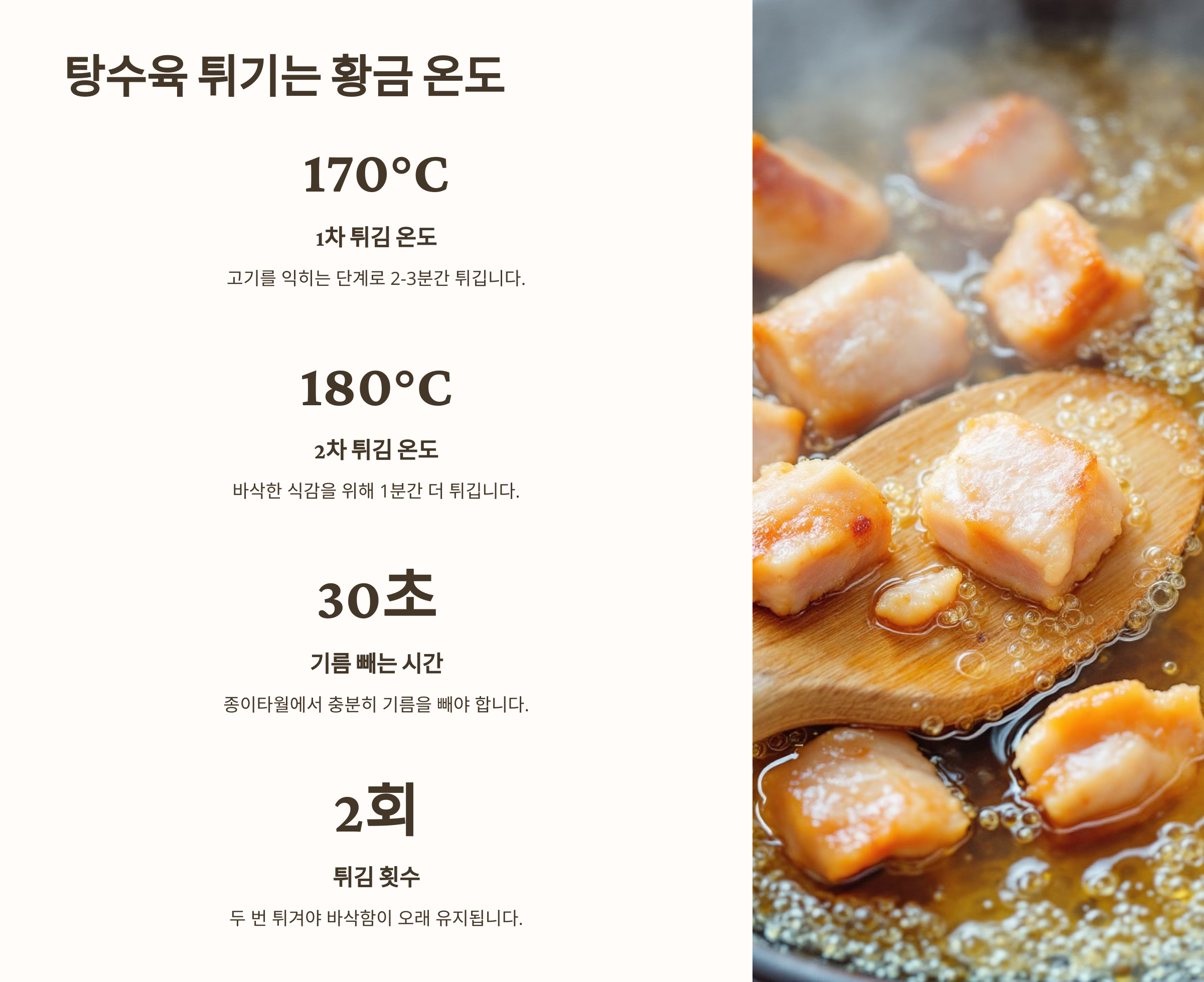 이제 탕수육을 바삭하게 튀기는 황금 온도를 알아볼까요? 🍖🔥