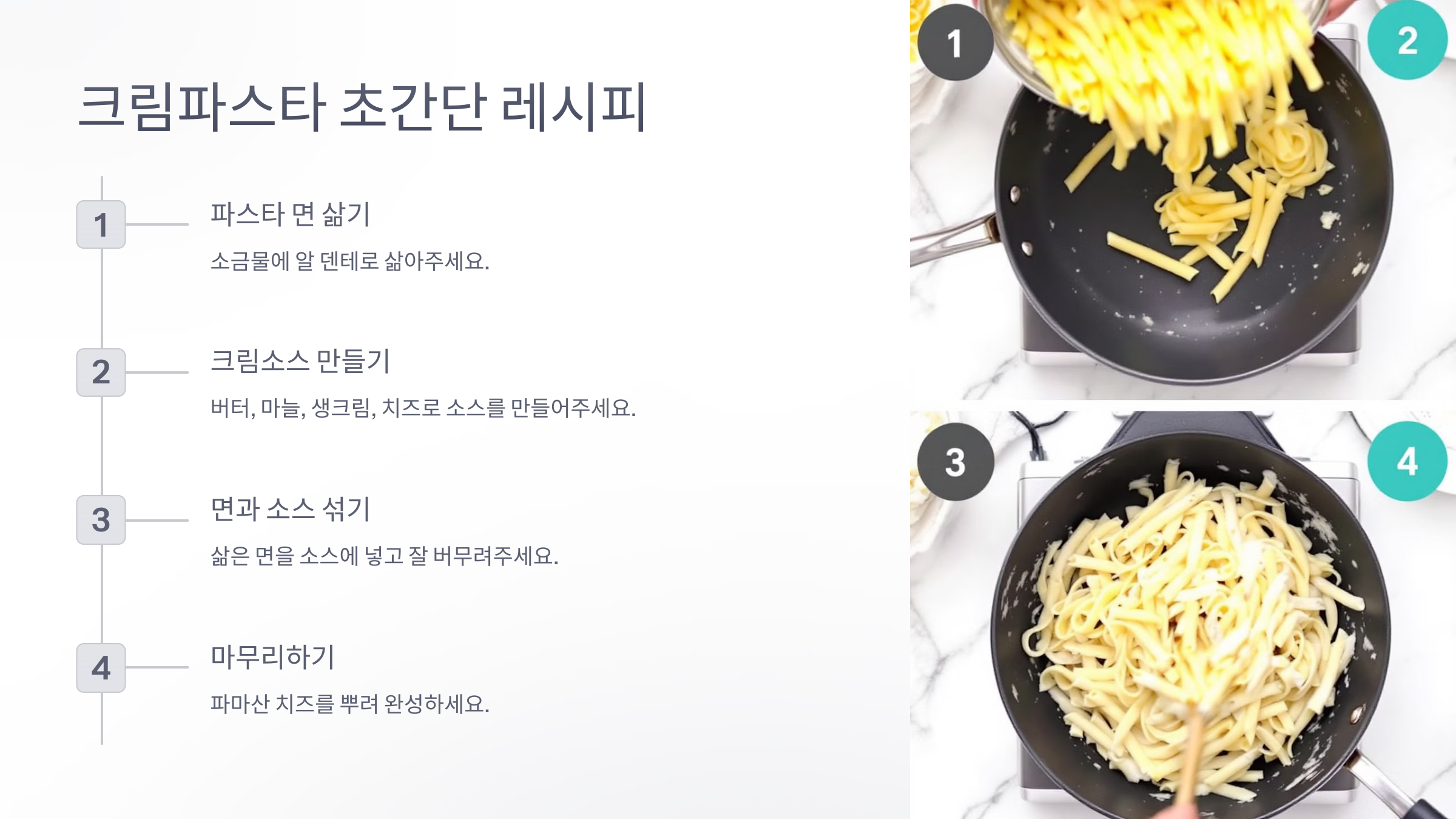 ✅ 이제, 이 부드러운 크림소스를 활용한 크림파스타 초간단 레시피를 배워볼까요? 🍝🔥
