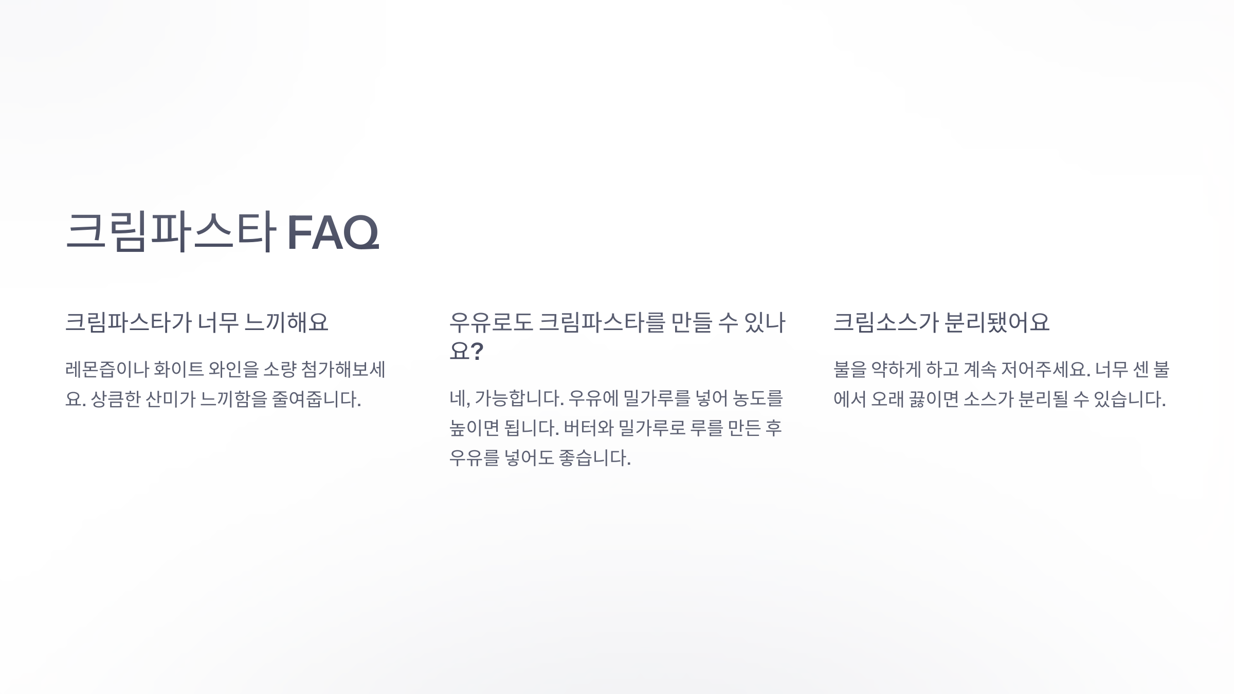 크림파스타를 만들 때 자주 궁금해하는 질문들을 정리해봤어요! 😊