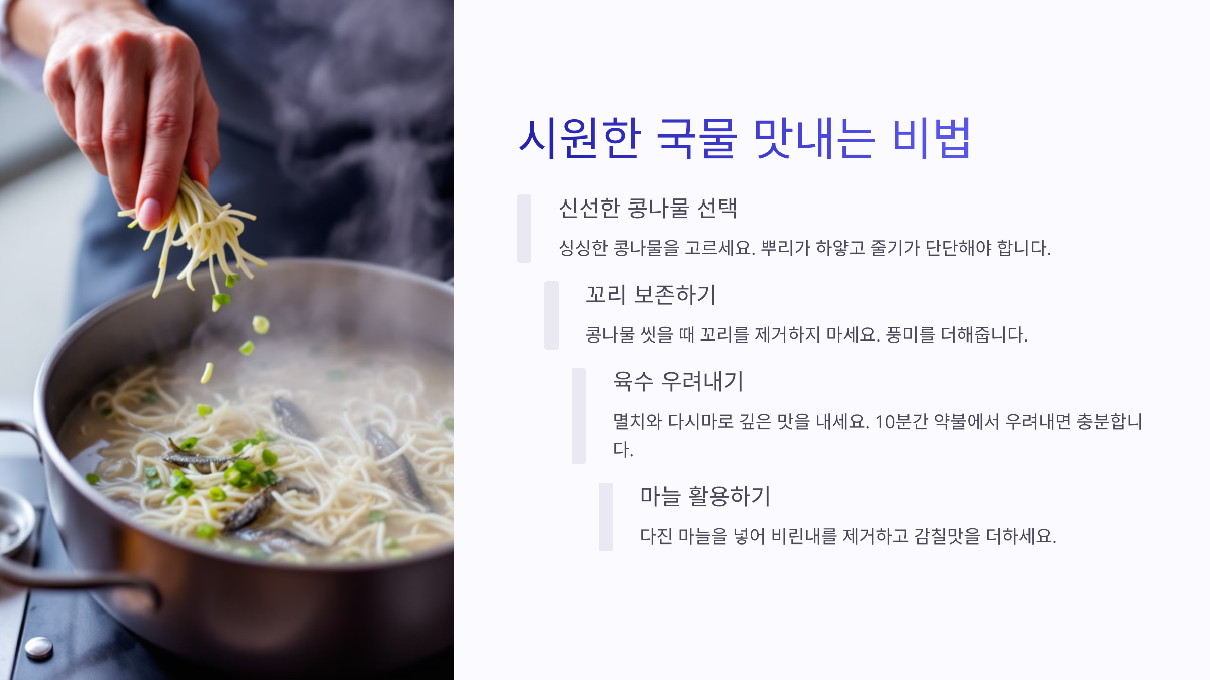 ✅ 콩나물국을 더욱 맛있게 만드는 핵심 팁