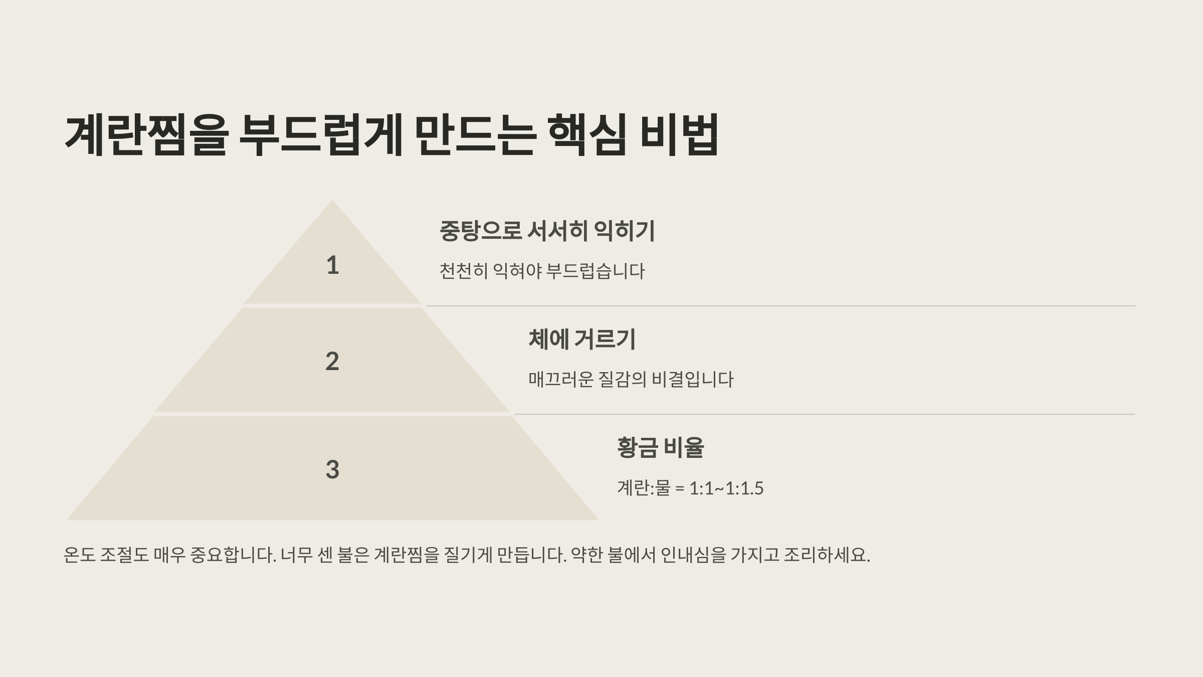 - 🥚 계란과 물(육수) 비율 → 계란 1개당 물 60ml (1:1.5 비율 유지)
