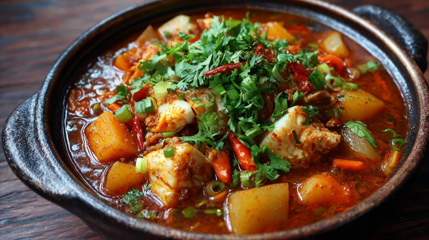 동태찌개는 얼큰하고 시원한 국물 맛이 일품인 한국의 대표적인 찌개 요리예요! 추운 날씨에 먹으면 속이 확 풀리고 든든한 한 끼가 된답니다. ❄️🔥