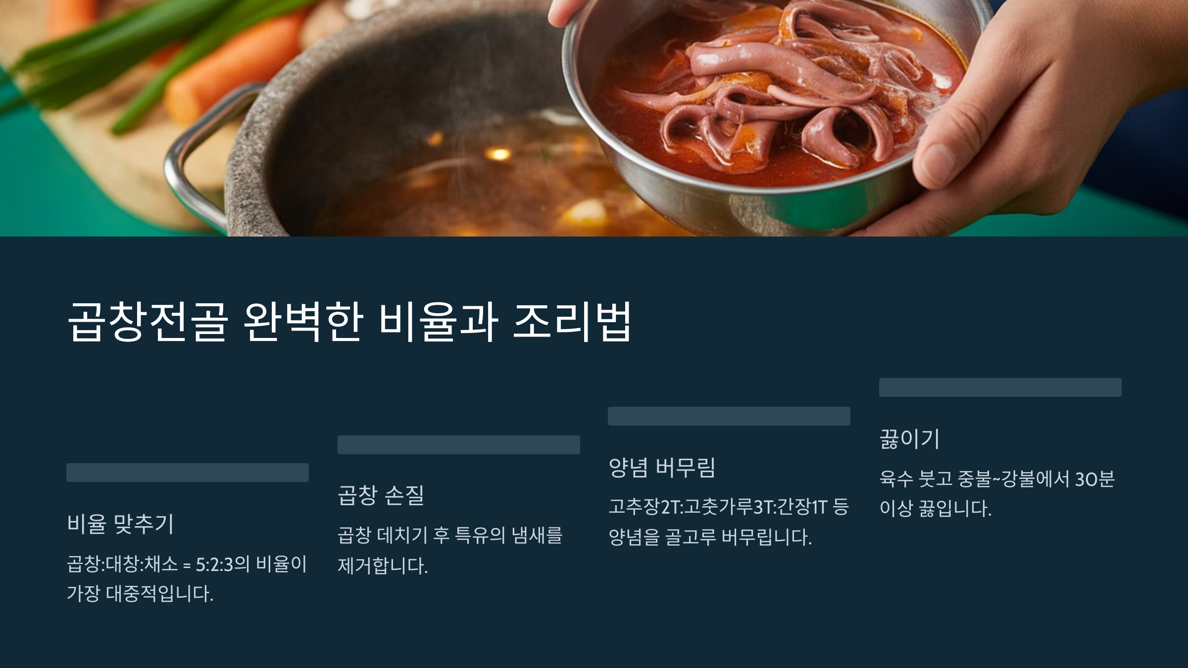 곱창전골은 곱창 손질부터 양념 배합, 국물 조절까지 신경 써야 할 부분이 많아요. 하지만 정확한 비율만 지키면 누구나 쉽게 깊고 진한 맛을 낼 수 있어요! 🍲🔥