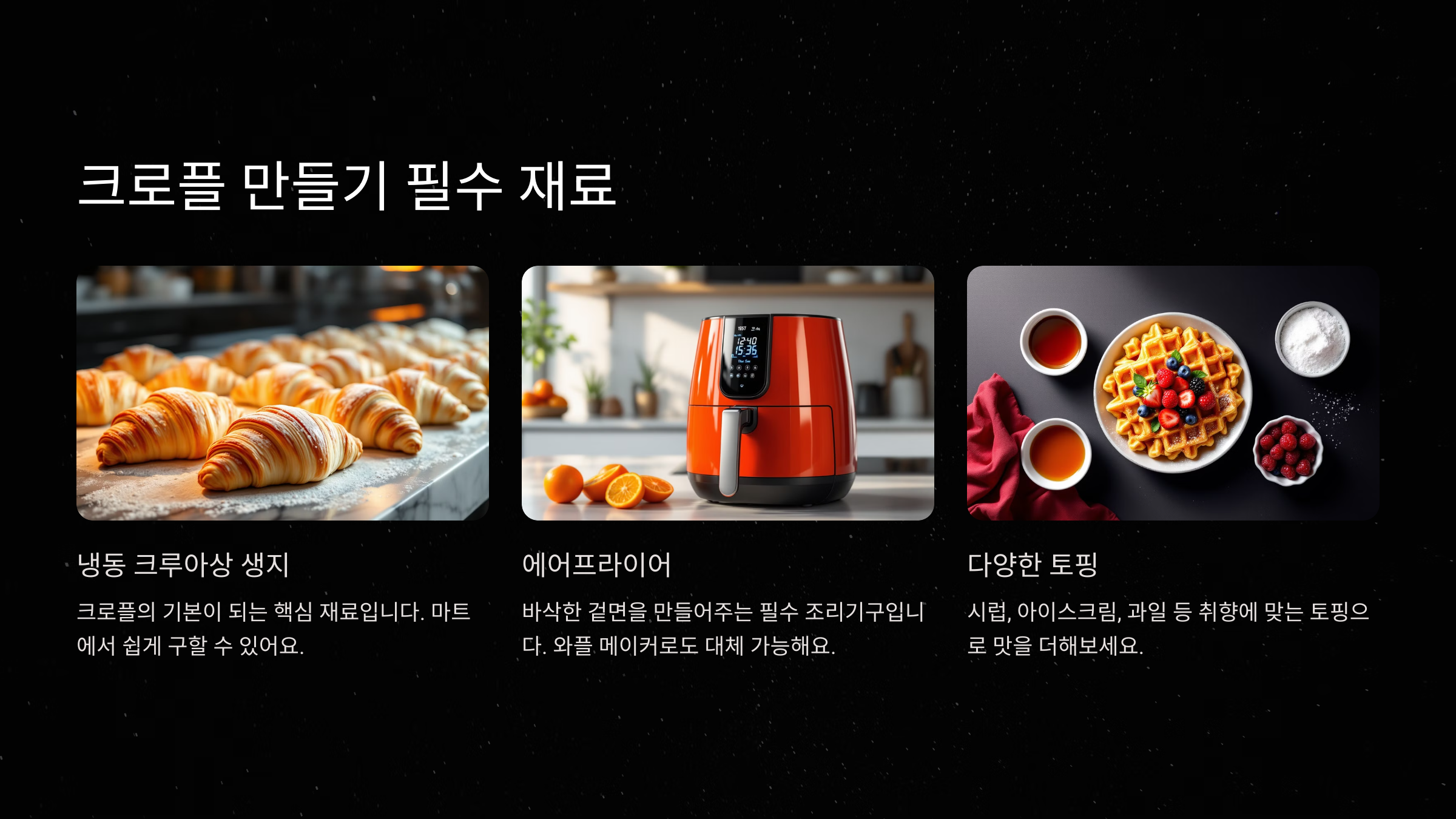 이제 크로플을 만들기 위한 기본 재료를 알아볼까요? 🥐🔥