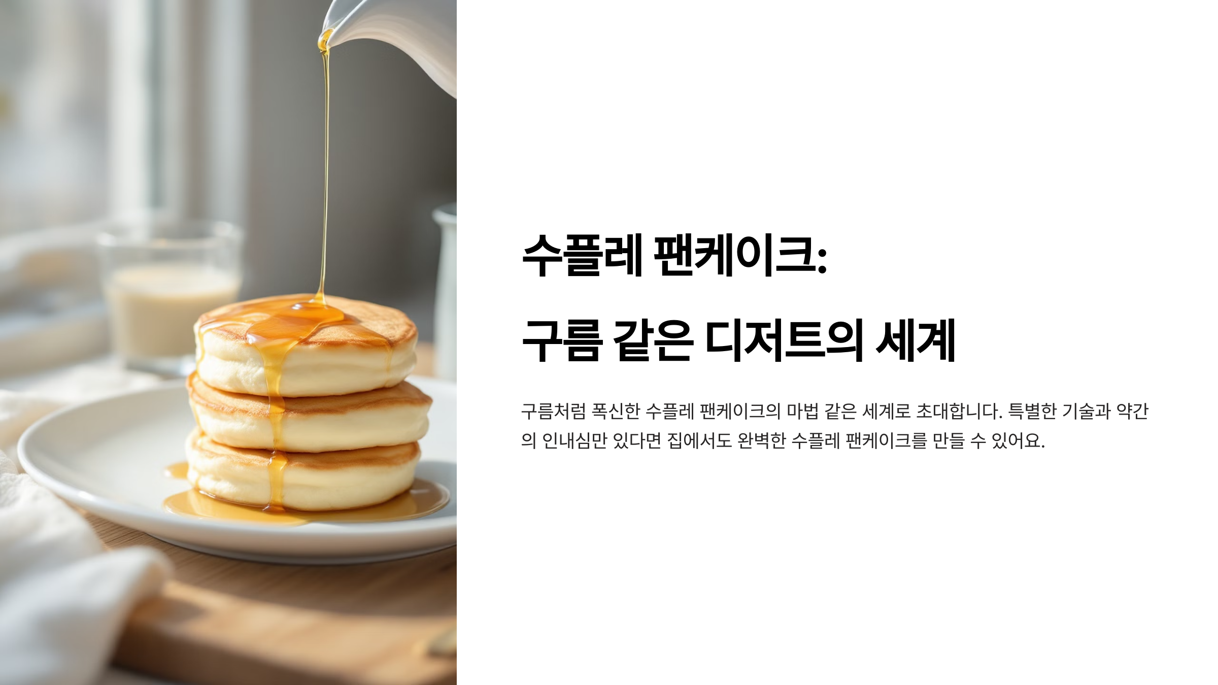 오늘은 핸드믹서 없이도 만들 수 있는 쉬운 방법부터, 카페에서 파는 퀄리티의 수플레 팬케이크를 만드는 팁까지! 초보자도 성공할 수 있는 레시피를 준비했어요. 😊🔥