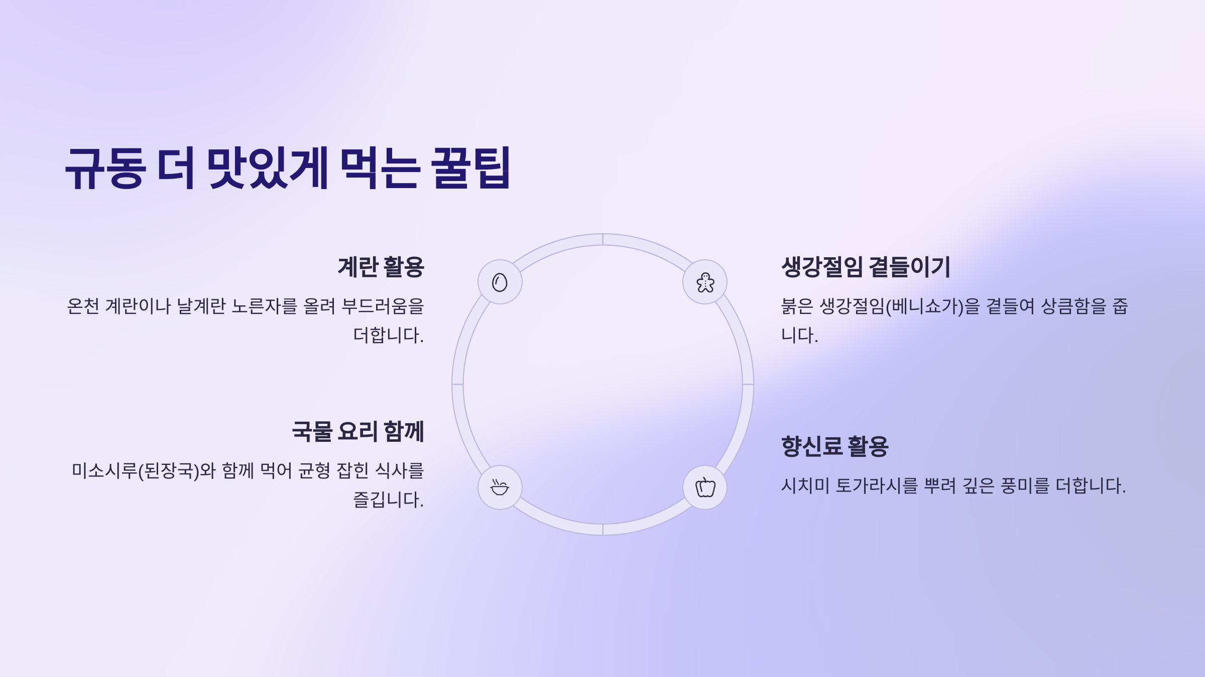 | 더 깊은 감칠맛 | 다시마 육수를 1큰술 추가 |